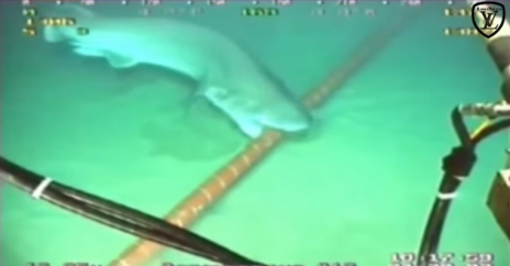 You can see one of the apolitical sharks in question in the video footage above, filmed late last year. Is it just me, or does that cable suddenly look delicious the moment the shark takes a good ol' chomp at it? It's a real worry when you look at a shark and get meal envy.