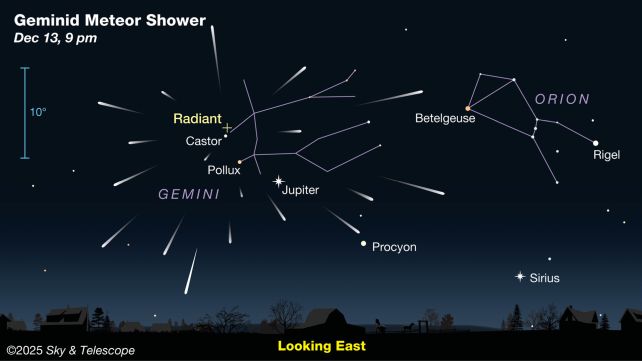 "Although the Perseids, which arrive every August, are better known, the Geminids usually put on a better show," says Sky & Telescope Editor in Chief Diana Hannikainen. "Just make sure to bundle up!"