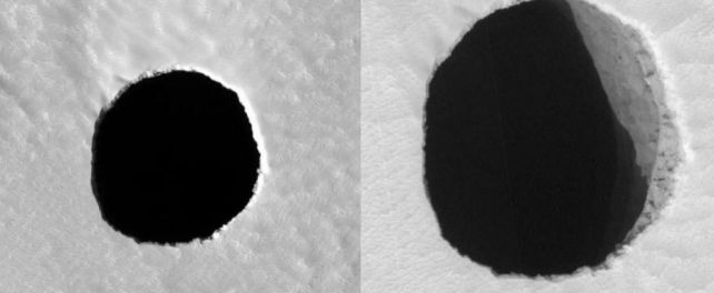 However, there is much uncertainty. An image of one of them shows an illuminated sidewall, which could indicate that it's just a cylindrical pit.