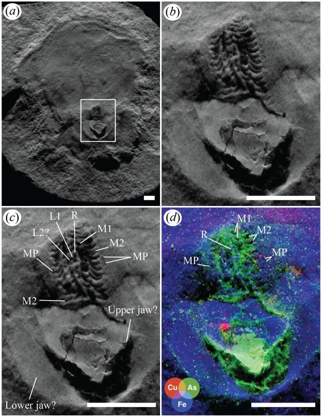So, when the researchers examined Pohlsepia with this technique, they found an anatomical feature that no one had been able to see before: 11 tiny tooth-like structures, all in a row. This, they said, is likely a radula, a tongue-like ribbon covered in denticles, found only in mollusks.